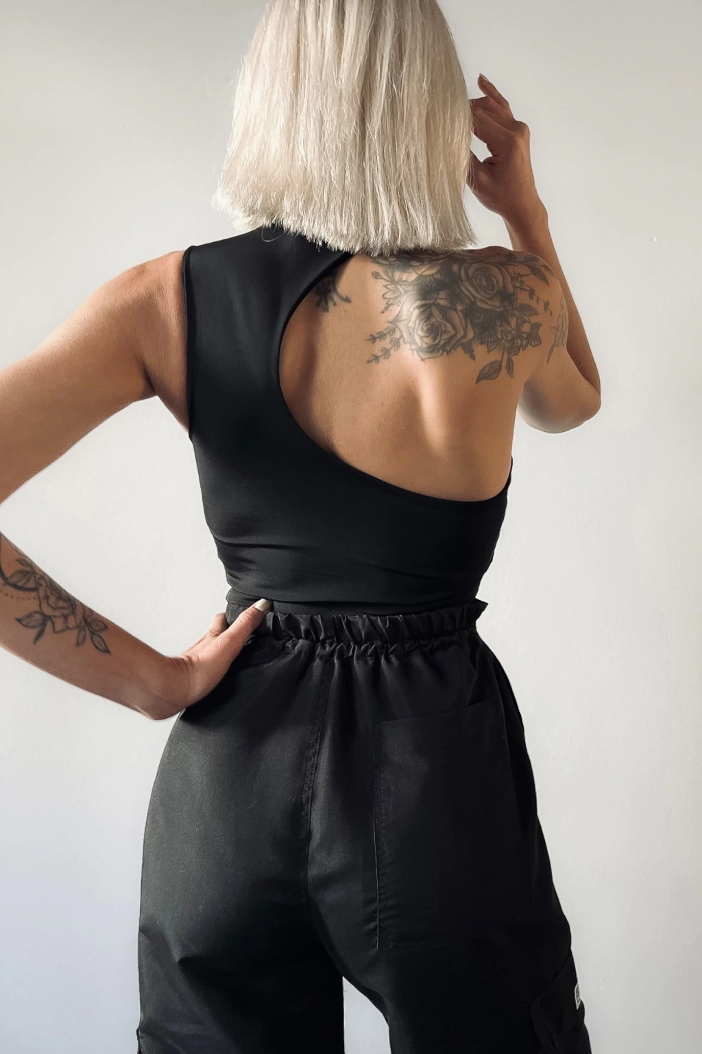 Descripción: Top asimétrico con cuello tipo polera, escote delantero irregular y escote de espalda asimetrico curvo y profundo para darle ese toque diferencial a tu look. Con vistas internas hasta abajo del busto en delantero y espalda, no trasluce y tiene buen agarre. Mega apto para usar sin corpiño. Sus costuras son embolsadas/ invisibles.