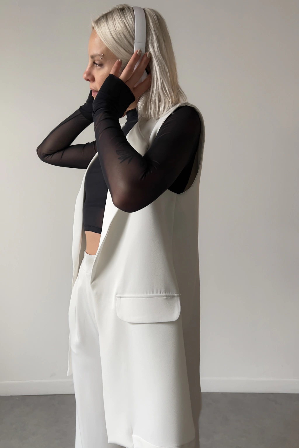 Chaleco de crepe importado, fluido, con cuepo y grosor. Look sastrero oversize, minimalista, recto, sin entalle.