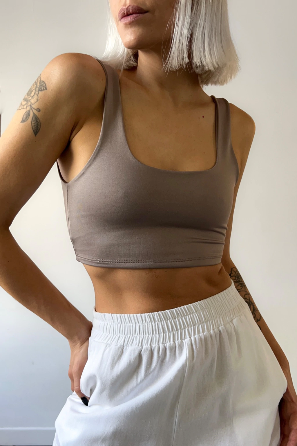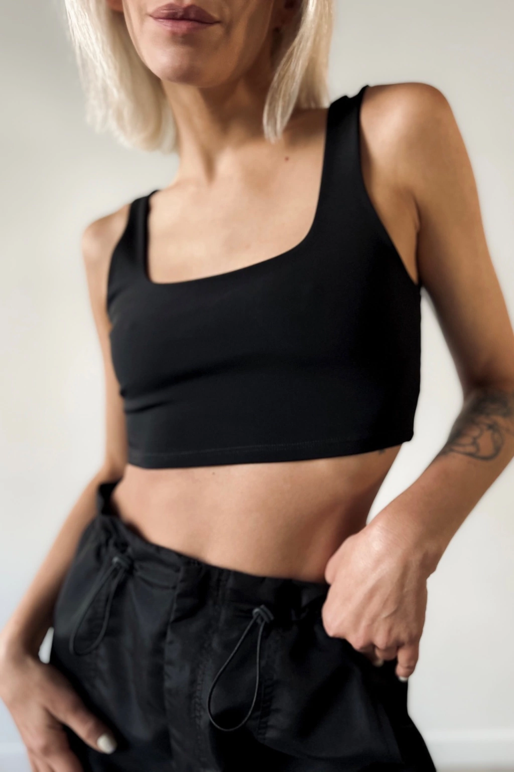 Top con escote delantero cuadrado y espalda semidescubierta con escote cuadrado profundo. Realizado en doble tela ( lycra premium), con forrería, costuras embolsadas/ invisibles. No trasluce y tiene buen agarre. Tu nuevo básico para usar sólo o debajo de cualquier prenda, ideal tanto para la vida urbana como para entrenar.