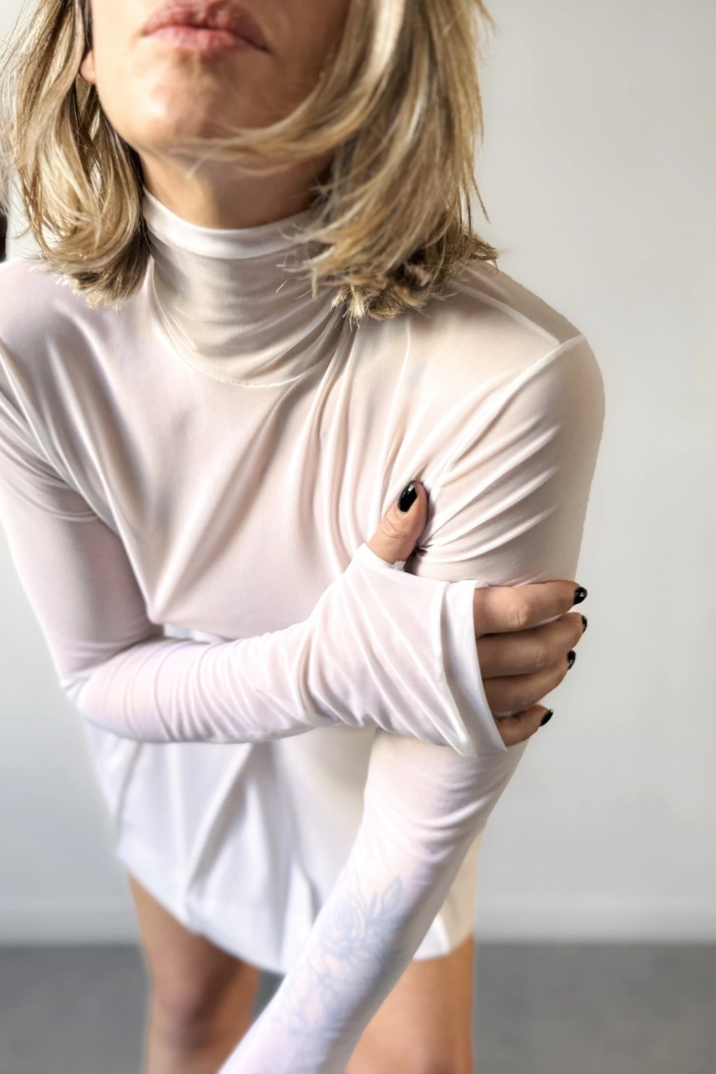 Polera de calce relajado, manga extra larga con abertura para dedo / puño miton. De microtul calidad premium, suave al tacto, de punto cerrado y bien elastizado. no se estira ni deforma con el uso. Negro grafito - mate y blanco.